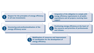 To improve energy use in these sectors, the strategy identifies five key orientations, translated into concrete actions structured around the following priorities: