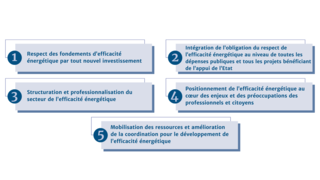 Pour améliorer l’usage de l’énergie dans ces secteurs, la stratégie fixe cinq grandes orientations qui se traduisent par des actions concrètes, structurées autour des priorités suivantes :